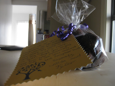 Anyways — I use some cellophane bags, purple curling ribbon, and brownies to make a cute and adorable gift.