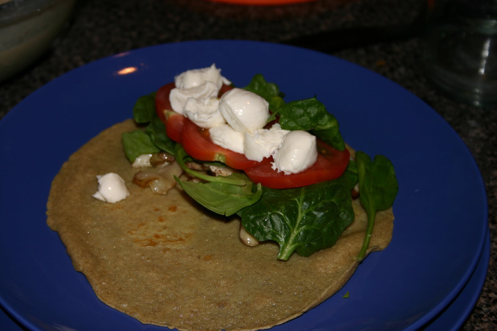 Put only 1/4 a cup of batter on the pan and swirl to spread it out into a thin pancake style. Cook it over medium to low heat, and flip every once in a while (the buckwheat crepe website above has a way better description of how to do this — so visit it!).