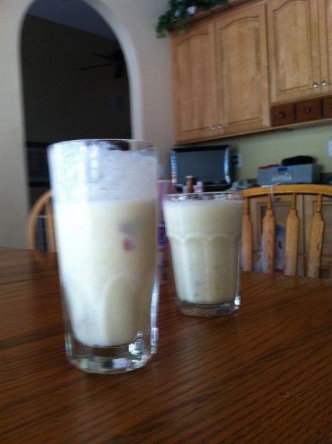 Blend it all together, and pour it out! 🙂 It’s tasty, it’s filling, and it goes well with the pizzas.