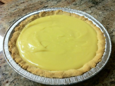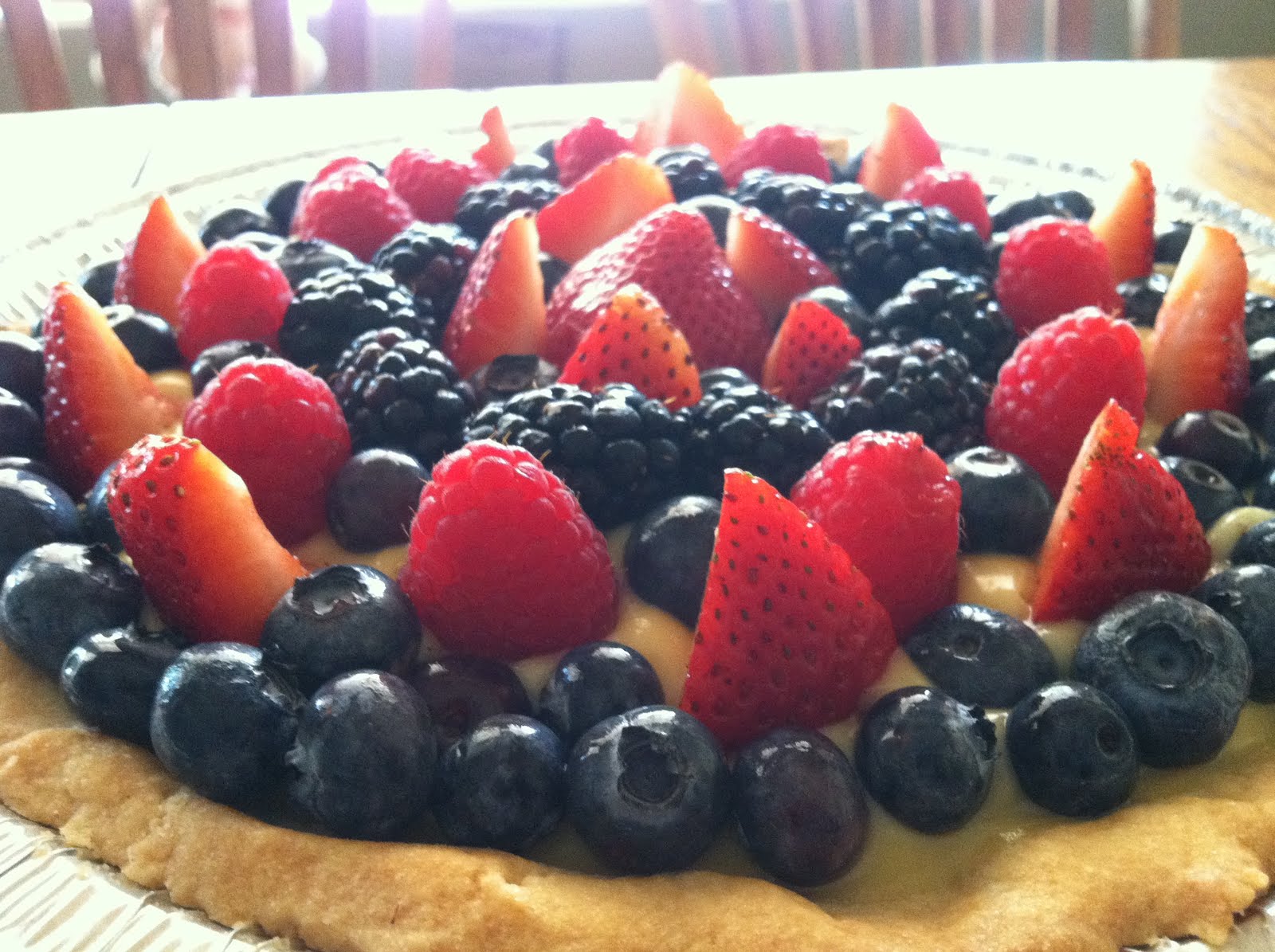 When everything is cool, pour the custard into the pie crust, and stick it in the fridge for 30 minutes to set up. Then top in a pretty pattern with fresh berries! Chill for 2 hours, then serve!