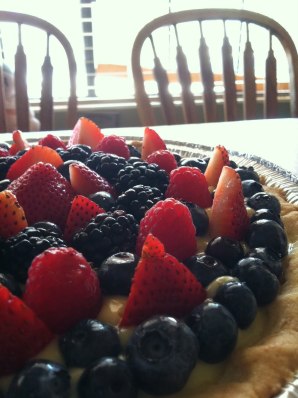 Speaking of things that fit well together, Raspberry White Balsamic Vinegar in fruit tart. It’s surprisingly good. I got this recipe from 17andbaking.com, and it’s amazing. I modified it a little bit, and I really liked it.
