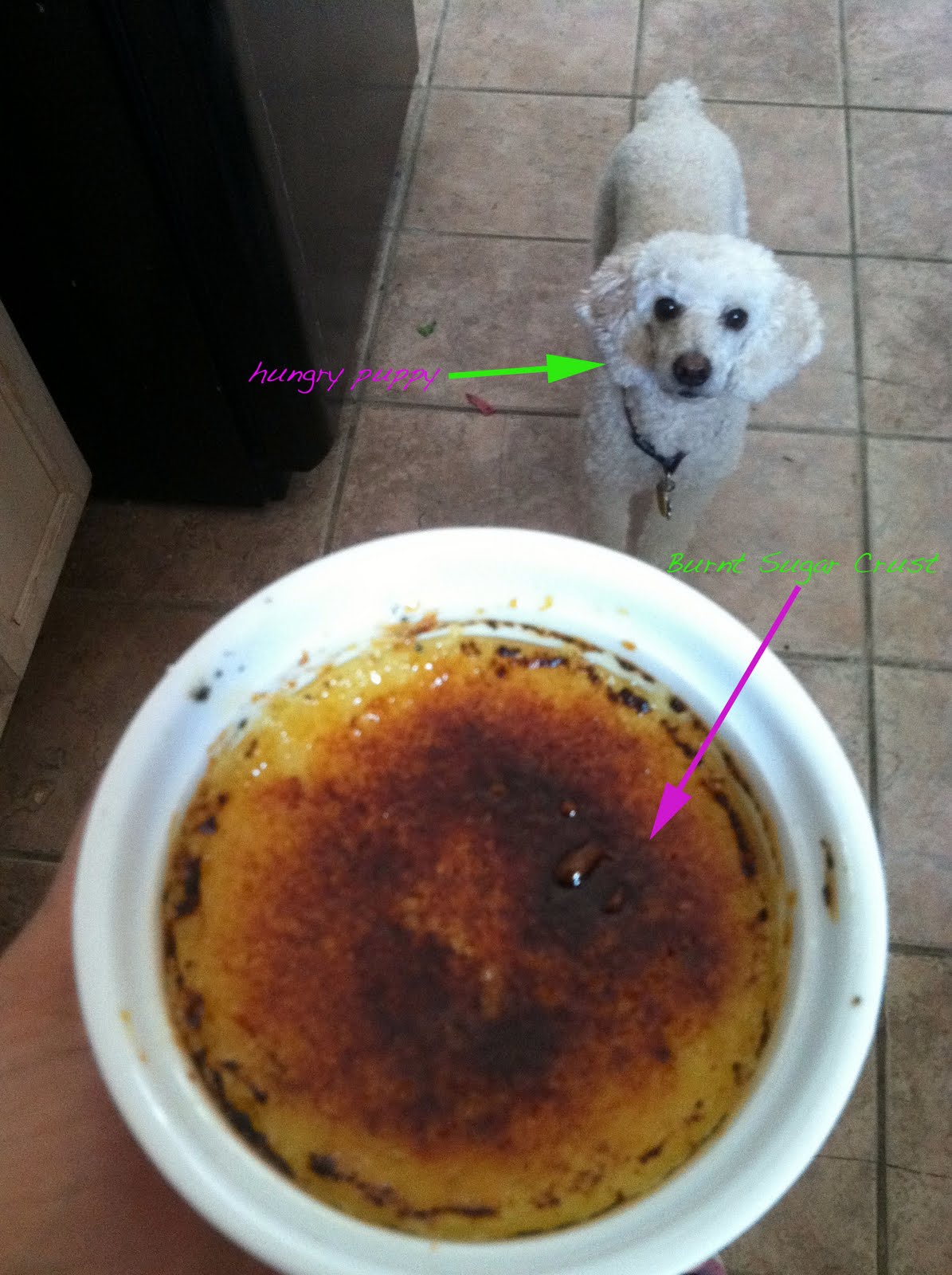 Yep, I made creme brulee. First off, terrible idea. When you make something, you learn what goes into it. But it’s so….goooooood. Seriously. Each bite is just so luxurious you just want more. So while I lament actually knowing what’s in each bite I’m taking, I revel in the pleasure of the creaminess while Jacques the dog looks on with pleading puppy eyes.