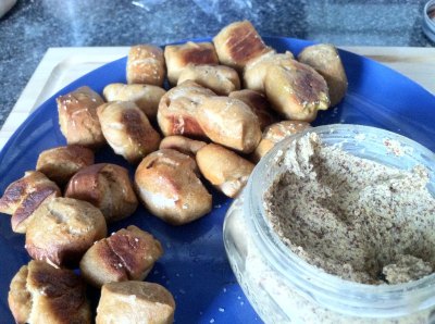 Maybe try with these pretzel bites…which are AMAZING. They taste like the kind you get in the mall. Except healthier, since they’re half whole wheat flour!