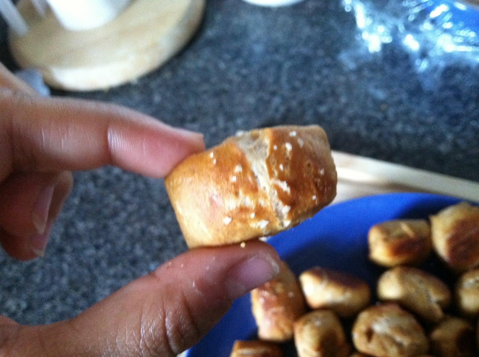 Maybe try with these pretzel bites…which are AMAZING. They taste like the kind you get in the mall. Except healthier, since they’re half whole wheat flour!