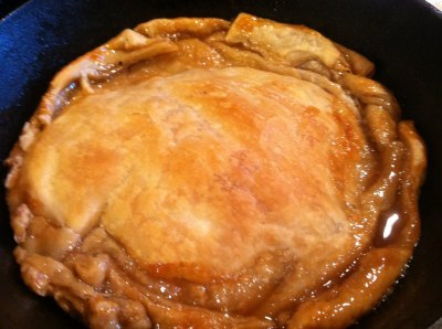 Then toss the whole thing in the oven for about 30-35 minutes, or until the crust is golden brown. The apples will absorb the carmel mixture during this time while the crust cooks.
