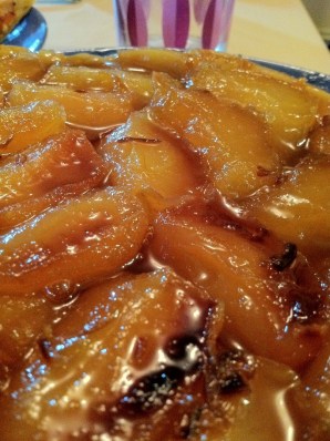 So today, I made a Mezze plate and an apple tarte tatin. A tarte tatin, according to wikipedia, was invented in a French hotel, Hotel Tatin, which was owned by two sisters. One day, one of the sisters was overworked and tired, and started to make an apple pie. She accidentally left the apples in the butter and sugar for two long, and it caramelized. Trying to save the dish, she put a pastry base on it, and baked the whole thing in the oven. When she pulled it out, and flipped it over, she was surprised how good it tasted, and how much the guests loved it. It just went on from there…