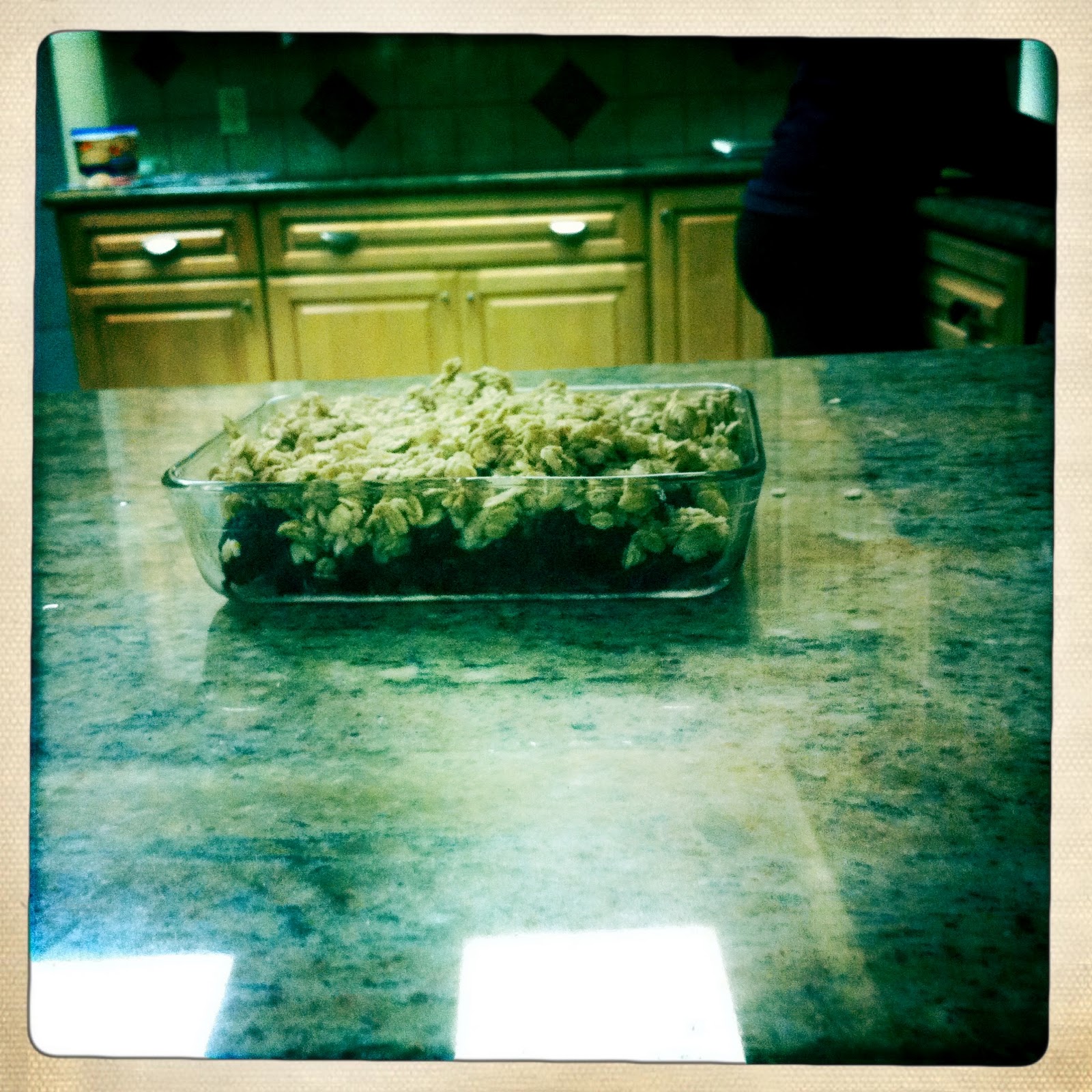 Grab any small container that can be baked in. I used a tiny pyrex container. In a small, separate bowl mix together all the ingredients for the filling. After they are well mixed, spread them evenly into the container.