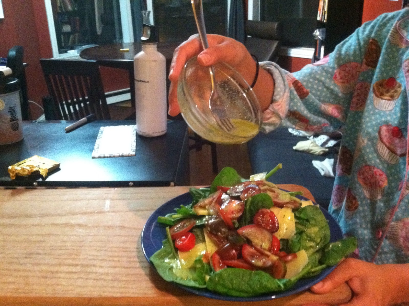 But I don’t have a ton of time to cook unfortunately, so my new obsession is the EarthBound Herb Puree. Sounds odd, but it’s amazing, and it lasts a LONG time. Try it, and you’ll love it–it’ll jazz up any regular old salad dressing, oh hey, like the one below.