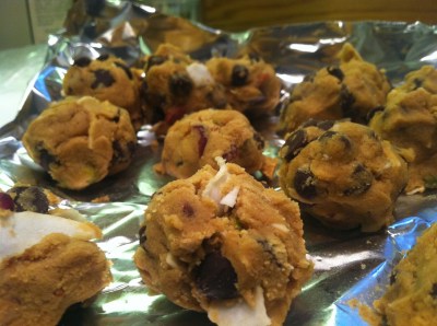In celebration of my addiction recognition–cookies! Now I’ve searched long and hard for good chocolate chip cookies, and I believe I found my answer on Smitten Kitchen. I tweaked the recipe a little, so now I’m calling them my Chocolate-What-You-Got-Cookies. In my case, I had trail mix, coconut flakes, and chocolate chips. BOOM, delicious.