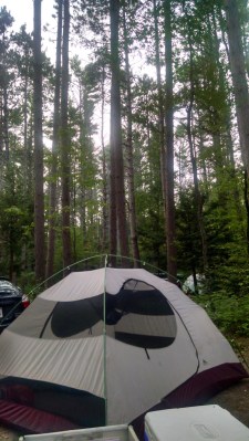 One of my goals for this summer is accomplished — camping! We went to Otter River State Forest near Sterling, MA on a Friday. It was definitely the most “organized” camp site I’ve been on, with a lot of spots, pretty close together…so if you’re looking to “rough it” this is definitely not the spot to go. But they allow pets, the sites and reasonably sized (fit a four person tent, a car, a fire pit, and a picnic table), and there’s swimming…though we didn’t partake in that particular joy because it was a bit too crowded for my taste. I’d definitely recommend it for a weekend getaway for someone who is interested in camping/getting away but doesn’t want to go somewhere too remote.