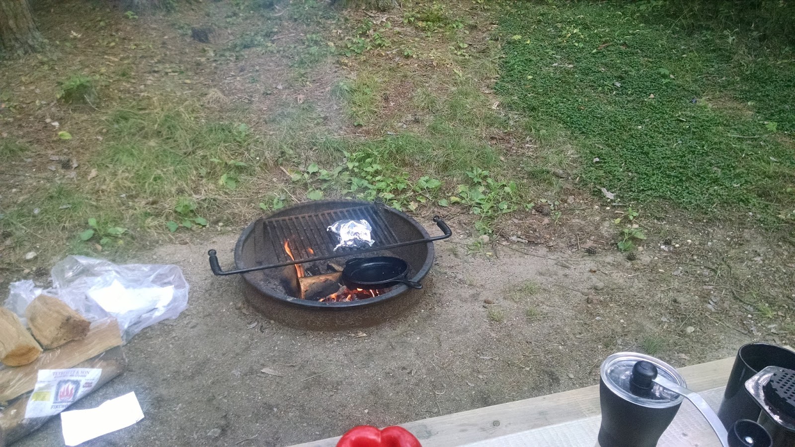One of my goals for this summer is accomplished — camping! We went to Otter River State Forest near Sterling, MA on a Friday. It was definitely the most “organized” camp site I’ve been on, with a lot of spots, pretty close together…so if you’re looking to “rough it” this is definitely not the spot to go. But they allow pets, the sites and reasonably sized (fit a four person tent, a car, a fire pit, and a picnic table), and there’s swimming…though we didn’t partake in that particular joy because it was a bit too crowded for my taste. I’d definitely recommend it for a weekend getaway for someone who is interested in camping/getting away but doesn’t want to go somewhere too remote.