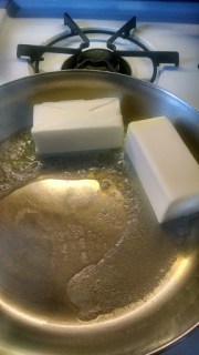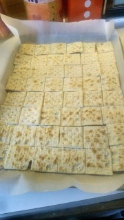 Preheat oven to 350F. Line a 9×13 baking sheet with parchment paper. If you don’t have 9×13, use what you have and modify the recipe. Line the parchment paper with saltines. It doesn’t have to be pretty, it just have to cover the bottom.