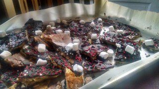 What you need: 1 cup salted butter, 8oz chocolate, 1 cup light or dark brown sugar, salt, toppings (cocoa nibs, marshmallows, sprinkles, chia seeds)