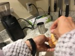 Put your sugar on a plate, and mix in the 1 tsp of orange blossom water. Mix the sugar/water mixture by hand. It’ll be a little crystal-y but that’s okay since it’s going on top of the brioche rolls.