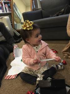 I’m not going to talk about the alarming domestic issues we are facing and the human rights violations of immigrant detention, or the international crises that are all but ignored by the media in favor the latest ludicrous tweet from our President. That’s for another time. All together though, in reflection — it makes me thankful for what I have. The ability to eat cheeses from different countries without a worry, drinking wine and watching my baby girl roll around with a bow on her head. That’s lucky. It is a gift to be surrounded by family and friends that love me, love her, and love Tyler. I am thankful for that.